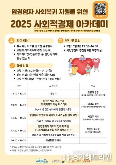 고양산업진흥원 고양시사회적경제지원센터가 오는 9월 16일 국립암센터에서‘2025년 고양시 사회적경제 아카데미’를 개최한다.