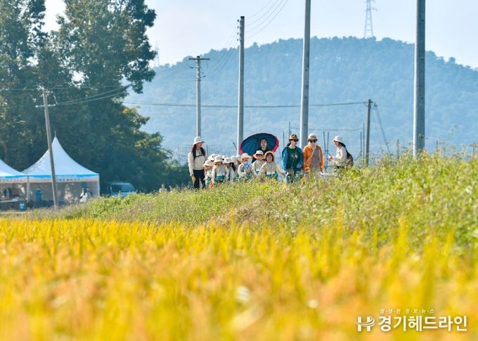 김포시는 지난 9월 26일부터 28일까지 3일간 월곶면 보구곶리 일원에서 ‘황금물결 들녘 걷기 행사’를 개최했다. 민선8기 김포시가 군과의 협의를 통해 첫 선을 보인 이번 행사는 수도권에서 가장 가까운 도농복합도시인 김포만이 가지는 천혜의 자연환경을 느긋하게 즐길 수 있게 마련된 프로그램으로, 사전예약을 한 200여명의 시민들이 문수산 파노라마 속 황금들녘 장관을 즐겼다. 행사는 3일간 오전과 오후 하루 2회로 나눠 진행됐으며, 2.5km의 황금들녘 걷기 체험과 포토존, 지역 체험농장 쿠폰, 현장 행운 뽑기 이벤트 등이 마련돼 참가자들에게 다양한 즐길거리를 제공했다.
