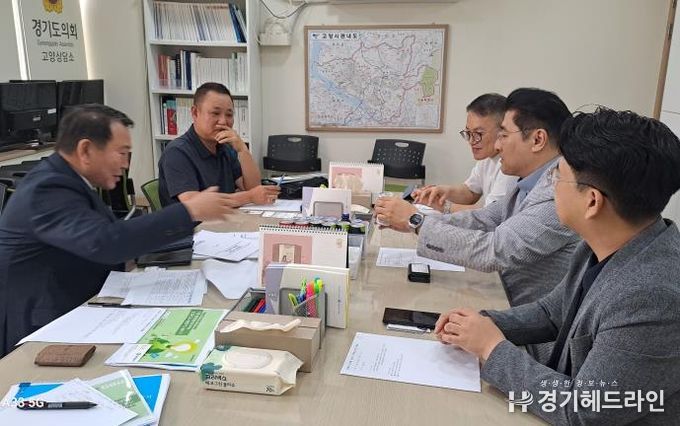 [경기헤드라인=문수철 기자] 경기도의회 도시환경위원회 명재성 의원(더불어민주당, 고양5)은 9월 29일 경기도의회 고양상담소에서 고양시 소재 기후테크 기업 대표들과 정담회를 갖고, 기후 위기 대응을 선도하는 혁신기업들의 성장 전략과 현장 애로사항을 청취했다.