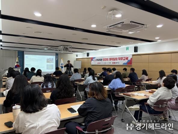 [경기헤드라인=문수철 기자] 오산시는 지난 16일 오산시청 물향기실에서 본청 및 산하기관 발주 담당자 45명을 대상으로 ‘2025년 계약심사 직무교육’을 실시했다고 밝혔다.