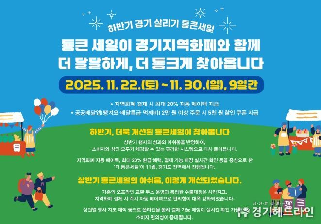 2025년 상반기 통큰 세일은 지난 6월 21일부터 29일까지 9일간 도내 396개 상권이 참여한 대규모 소비 촉진 행사다. 소비 인증 페이백, 경기도 공공배달애플리케이션 할인, 상인회 자율 행사 등 다양한 프로그램이 함께 운영됐다.