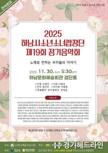 하남시소년소녀합창단 관계자는 “아이들이 한 해 동안 쌓아온 노력과 열정을 노래로 전하는 무대인만큼, 많은 시민 여러분의 따뜻한 박수와 응원을 부탁 드린다”고 전했다.