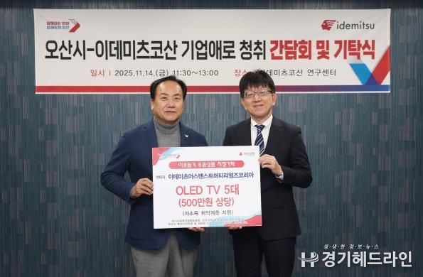 또 이데미츠코산은 지역사회 공헌 활동의 일환으로 OLED 기술이 적용된 약 500만 원 상당의 TV를 오산시에 기탁했으며, 시는 전달받은 기기를 관내 경로당 등에서 활용할 계획이라고 밝혔다.