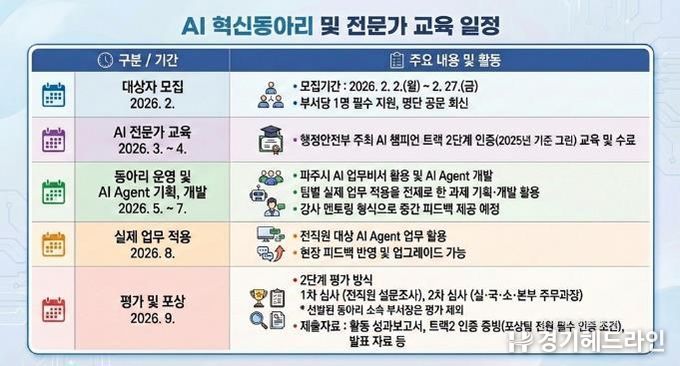 파주시 관계자는 “단순히 인공지능(AI)을 배우는 수준을 넘어, 공무원이 직접 인공지능(AI)을 설계해 행정 환경을 바꾸는 것이 이번 사업의 본질”이라며 “인공지능(AI) 혁신동아리를 통해 전 직원이 인공지능(AI)과 협업하며 시민들에게 더 빠르고 정확한 행정 서비스를 제공할 수 있도록 최선을 다하겠다”라고 말했다.