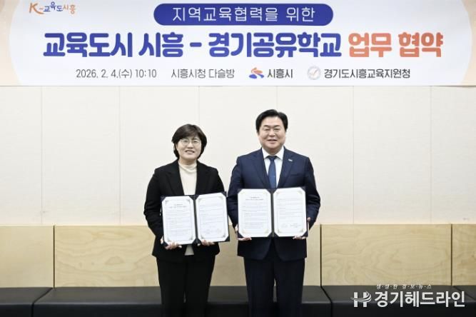 [경기헤드라인=문수철 기자] 시흥시는 지난 2월 4일 시청 다슬방에서 시흥교육지원청과 함께 ‘지역교육협력을 위한 교육도시 시흥-경기공유학교’ 업무협약을 맺었다.