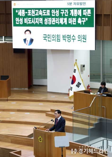 박명수 의원은 이날 발언에서 “세종~포천고속도로 안성~구리 구간의 전면 개통은 단순한 교통 인프라 확충을 넘어 경기 남부 공간 구조 전반에 영향을 미칠 수 있는 중대한 변화”라며, “그동안 상대적으로 소외돼 왔던 안성 동부지역이 새로운 성장 축으로 전환되는 시점에 들어섰다”고 밝혔다.
