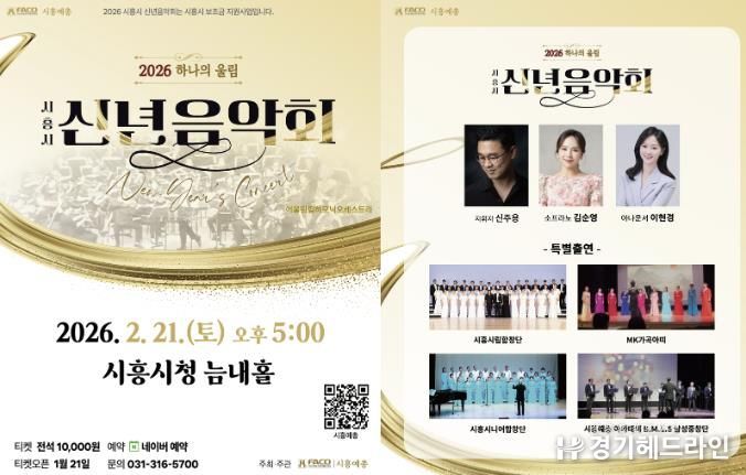 [경기헤드라인=문수철 기자] 시흥시가 지원하고 (사)한국예술문화단체총연합회 시흥지회에서 주관하는 ‘2026 시흥시 신년음악회- 하나의 울림’이 오는 2월 21일 오후 5시, 시청 늠내홀에서 개최된다.