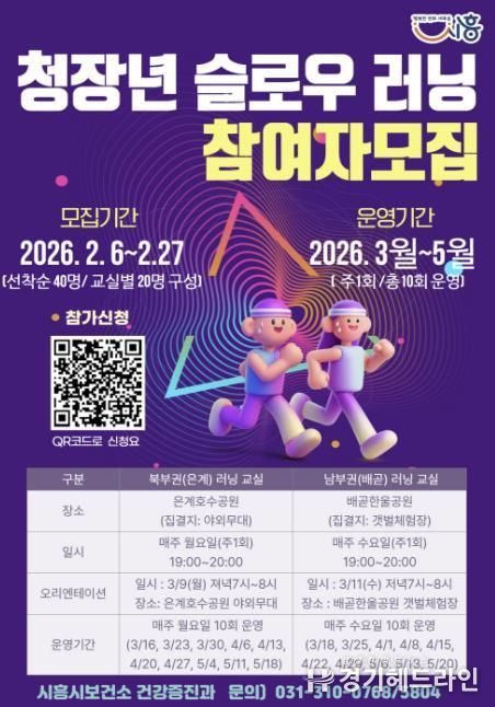 이형정 시흥시보건소장은 “슬로우 러닝은 운동 초보자도 부담 없이 참여할 수 있는 신체활동 프로그램”이라며 “시민들이 규칙적인 운동을 통해 건강한 일상을 만들어 가길 기대한다”라고 말했다.