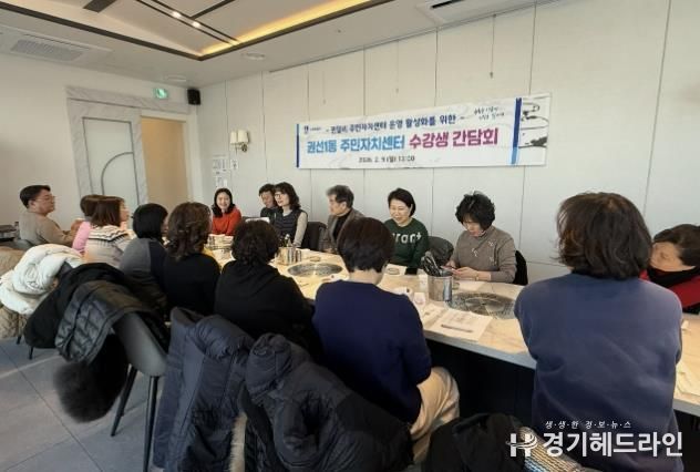 [경기헤드라인=문수철 기자] 지난 6일 및 9일, 권선1동 주민자치회는 주민자치센터 프로그램 운영 활성화를 도모하고자 2026년 권선1동 주민자치센터 강사 간담회 및 수강생 간담회를 각각 개최했다.