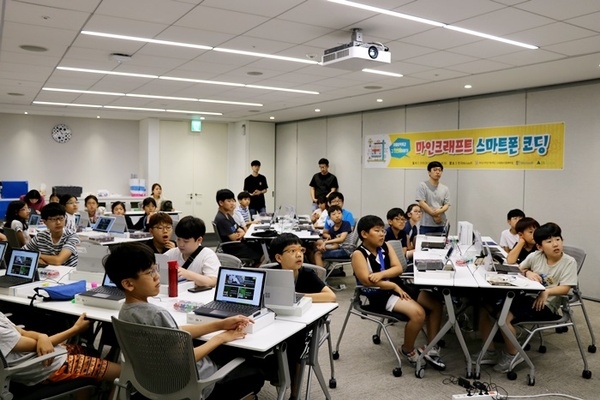 8월 10일(금)에 진행된 여름방학특강 그 첫 번째 이야기 ‘마인크래프트 스마트폰게임 코딩’은 세계적인 소프트웨어 기업인 Microsoft사(社)에서 진행되었다는 점에서 의미가 더 크다. 실제 개발회사를 방문하여 임직원에게 소프트웨어 교육의 중요성을 듣고 사무실을 투어하며 코딩프로그램만 체험하는 것이 아닌 진로탐색에도 도움을 준 좋은 기회가 되었다.