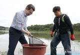 한탄강 청년어부와 참게 들어올린 김동연