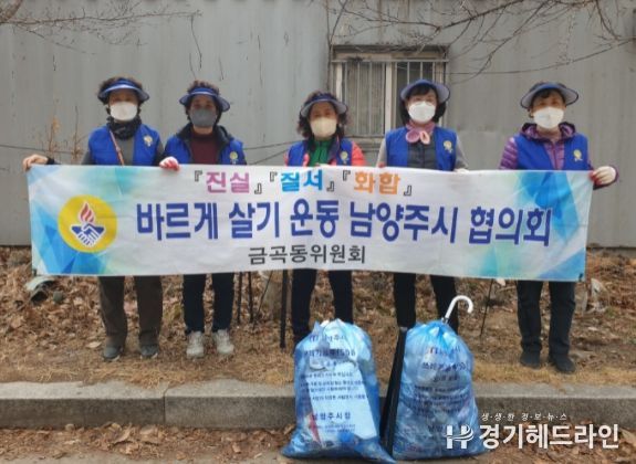 [경기헤드라인=유수상 기자] 바르게살기운동 남양주시협의회 금곡동위원회(위원장 이남순)은 지난 12일 금곡동 에서 쓰레기를 줍고 건강도 챙기는 에코플로깅(Eco-plogging) 활동을 실시했다.