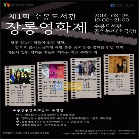 인천광역시도서관협회가 운영하는 수봉도서관(관장 송영숙)은 “수봉도서관 2014년 ‘문화가 있는 날’ 제1회 장롱영화제”를 3월 26일(수) 오후 7시에 개최한다.