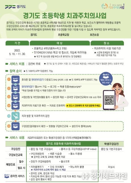 [경기헤드라인=남성래 기자] 양평군에서는 오는 16일부터 11월 말까지 초등학교 치과주치의 사업을 실시한다고 밝혔다.