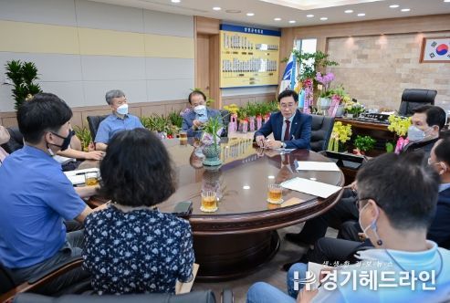 [경기헤드라인=남성래 기자] 전진선 양평군수는 지난 1일 취임식을 마친 뒤 양평군 관내 주재 기자들과 함께 가벼운 티타임 형식의 간담회를 가졌다.