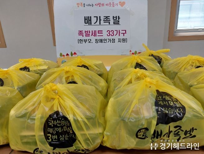 [경기헤드라인=문수철 기자] 배가족발 의왕오전점은 가정의 달을 맞아 저소득 한부모, 장애인 가정을 위해 족발세트 33개를 3일 오전동 주민센터에 전달했다.