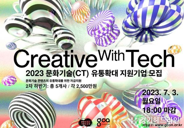 경기도는 7월 3일 오후 6시까지 ‘2023 문화기술 유통확대 지원’ 참여 기업을 모집한다.