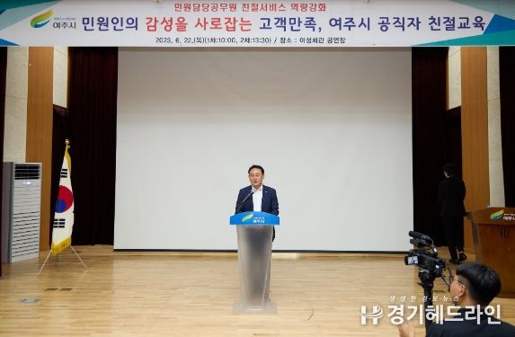 [경기헤드라인=정현수 기자] 여주시는 지난 22일 여주시 공직자를 대상으로 2023 민원 서비스 향상을 위한 공직자 친절교육을 여주시 여성회관 공연장에서 실시했다.