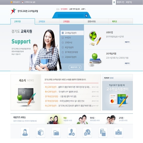 이번에 개설한 경기도교육청 교수학습 통합 홈페이지는 관문기능을 수행하는 교수학습포털(http://edup.goe.go.kr)을 신규 구축하고 기 운영 중인 교수학습 홈페이지를 16개로 재구축하여 학생, 학부모, 교사 등이 다양한 교수학습 정보를 쉽게 찾아 활용할 수 있도록 했다.