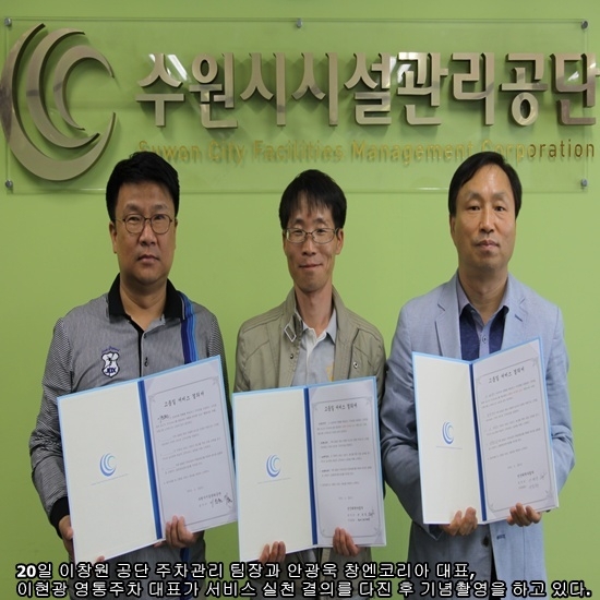 【경기헤드라인】수원시시설관리공단(이사장 윤건모) 주차사업부는 20일 공단 6층 대회의실에서 노상주차장 민간위탁 사업자 대표 등이 참석한 가운데 “선진 주차문화 확립을 위한 고품질 서비스 실천”을 결의했다.