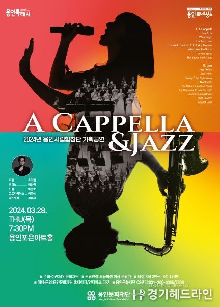 용인시립합창단은 2017년에 지역 문화예술 향유기대 확대와 발전을 위해 창단되어 정통 클래식 외 가곡, 뮤지컬, 현대음악 그리고 창작곡을 통해 관객들에게 차별화된 합창 음악을 선보이고 있다. 특히 이번 공연에서는 2024년 봄을 맞이하여 아카펠라와 재즈란 주제를 가지고 서로 다른 두 색깔의 매력을 아름다운 하모니로 관객들에게 선사할 예정이다.