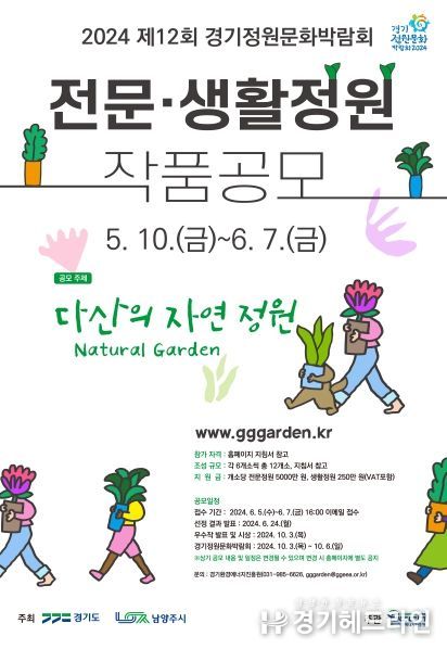 [경기헤드라인=문수철 기자] 경기도는 10월 남양주시 다산중앙공원 일원에서 열릴 ‘제12회 경기정원문화박람회’에 전시될 작품을 공모한다고 15일 밝혔다.