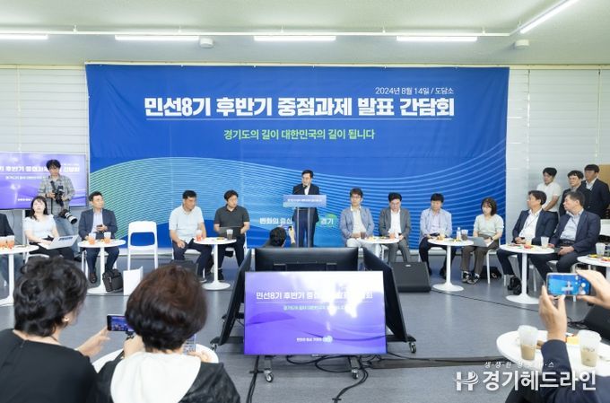 김동연 지사는 14일 도담소(옛 경기도지사 공관) 기자간담회에서 사람중심경제(휴머노믹스) 실천을 위한 임기 후반기 중점과제로 이런 내용을 담은 기회·돌봄·기후·평화 등 4개 경제분야 신규 사업 구상을 밝혔다.