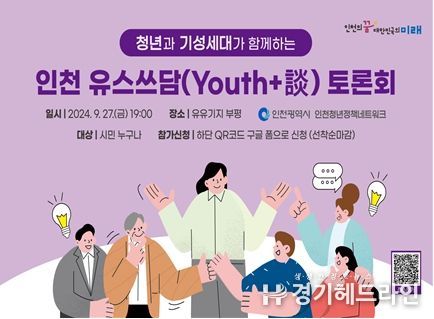 [경기헤드라인=문수철 기자] 인천광역시는 9월 27일 오후 7시, 청년공간 유유기지 부평에서 ‘청년과 기성세대가 만나 꿈과 마음을 나누다’를 주제로 청년정책네트워크가 주관하는 정책 토론회를 개최한다고 밝혔다.