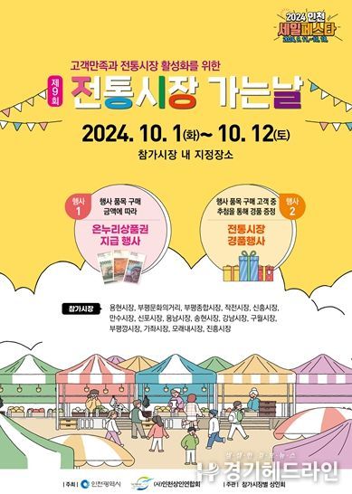 이번 행사는 전통시장 활성화와 민생안정을 위해 (사)인천상인연합회(회장 서장열)가 주최하고 인천시가 후원하며, ‘인천 세일페스타' 기간에 맞춰 관내 15개 전통시장에서 열린다.
