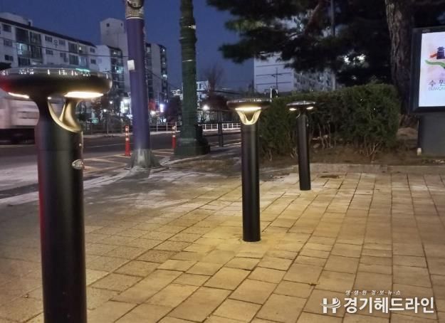 새롭게 교체된 볼라드는 기존 볼라드보다 가시성이 뛰어난 태양광 LED 볼라드로, 특히 야간에도 보행자들에게 안전한 환경을 제공한다.