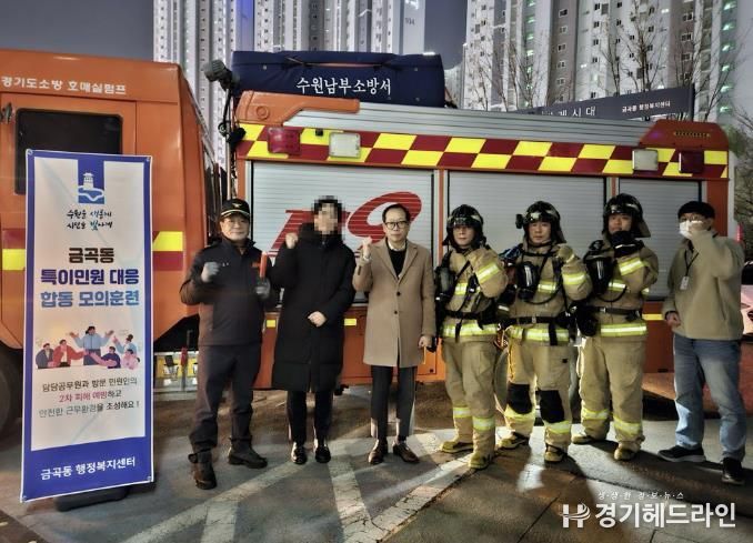 [경기헤드라인=문수철 기자] 수원특례시 권선구 금곡동은 지난 11일 행정복지센터 민원실에서 특이민원 발생 비상상황에 대비해 경찰·소방과 연계한 합동 모의훈련을 진행했다.