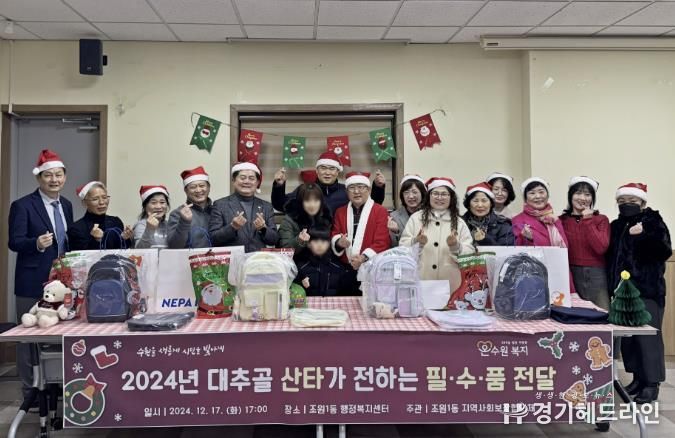 [경기헤드라인=문수철 기자] 수원특례시 장안구 조원1동 지역사회보장협의체는 지난 17일, 동 행정복지센터에서 ‘산타가 전하는 필수품’ 책가방 전달식을 진행했다.
