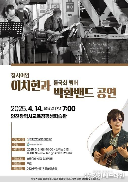 [경기헤드라인=문수철 기자] 인천광역시교육청평생학습관은 4월 14일 오후 7시 미추홀에서 ‘집시여인 이치현과 들국화 멤버 박환밴드’ 공연을 개최한다.