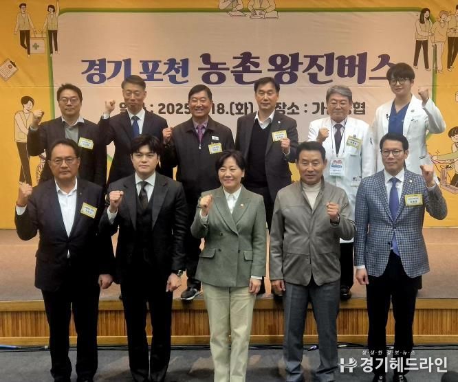 [경기헤드라인=문수철 기자] 경기도의회 농정해양위원회 부위원장 윤종영 의원(국민의힘, 연천)이 지난 18일 포천 가산체육문화센터에서 진행된 ‘농촌 왕진버스’ 행사에서 농림축산식품부 송미령 장관과 박성우 농촌정책국장을 접견하고 연천군을 ‘농촌 체류형 복합단지’로 지정해줄 것을 건의했다.