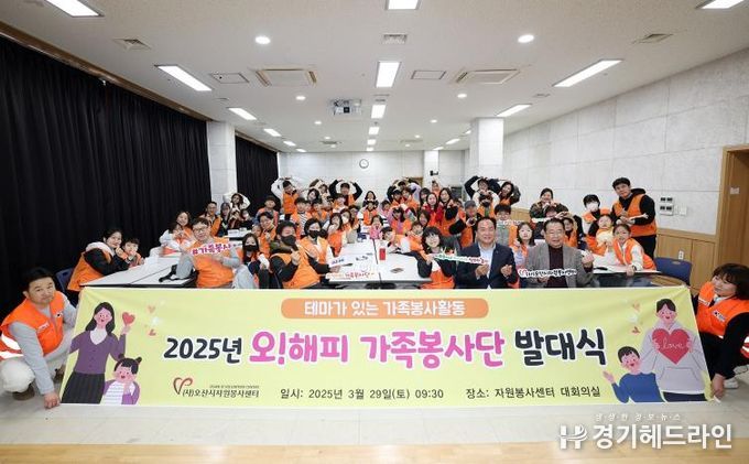 [경기헤드라인=문수철 기자] 오산시자원봉사센터는 지난 3월 29일 센터 1층 대회의실에서 "오!해피가족봉사단" 발대식을 개최했다고 밝혔다. 이날 행사에는 20여 가정 70명이 참석해 가족 중심 봉사활동의 본격적인 시작을 알렸다.