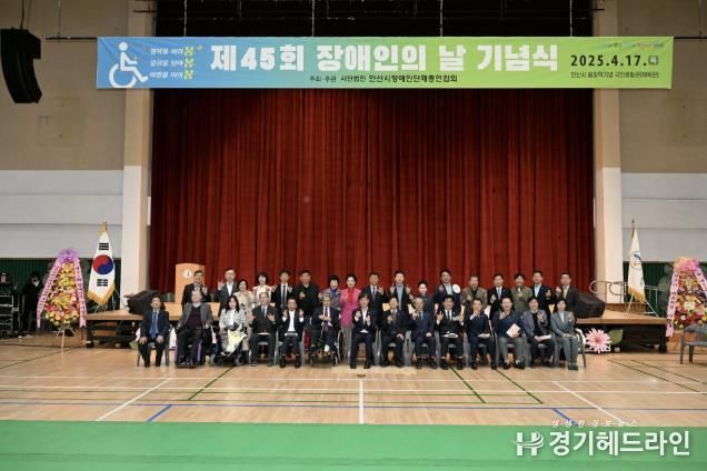 [경기헤드라인=문수철 기자] 안산시는 지난 17일 올림픽기념관 체육관에서 ‘행복을 바라봄, 일상을 담아봄, 희망을 이어봄’이라는 슬로건 아래 제45회 장애인의 날 행사를 개최했다고 18일 밝혔다.