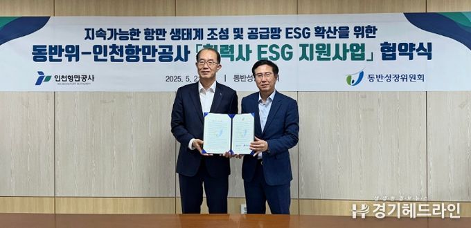[경기헤드라인=문수철 기자] 인천항만공사는 21일 남산스퀘어빌딩(서울특별시 중구 퇴계로 173)에서 인천항 협력 중소기업의 이에스지(ESG) 대응역량 강화 지원 및 인천항 이에스지(ESG)경영 문화 확산을 위해 작년에 이어 2년 연속으로 동반성장위원회와 ‘2025년도 협력사 이에스지(ESG) 지원사업 협약’을 체결했다고 밝혔다.