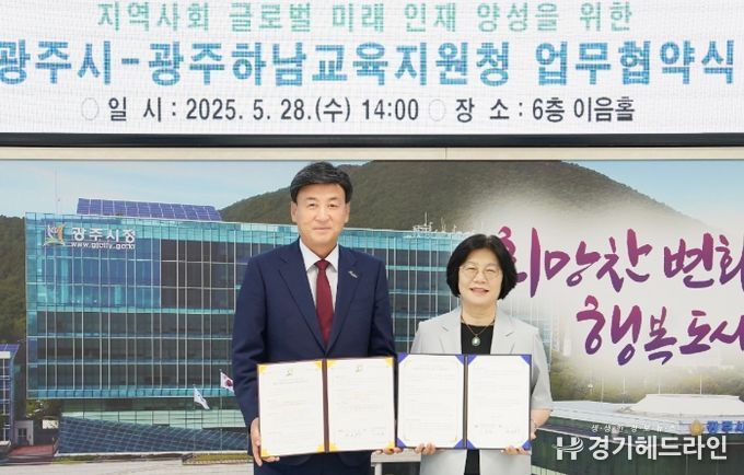 [경기헤드라인=정현수 기자] 경기도광주하남교육지원청과 광주시는 2025년 5월 28일, 광주시청 이음홀에서 ‘지역사회 글로벌 미래 인재 양성’을 위한 업무협약을 체결했다.