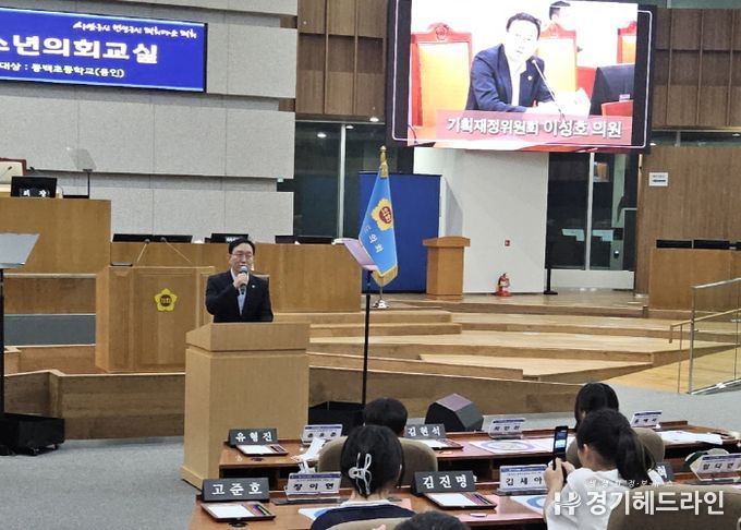 [경기헤드라인=문수철 기자] 경기도의회 기획재정위원회 이성호 의원(국민의 힘, 용인9)은 25일에 경기도의회에서 용인시 동백초등학교 학생자치회 소속 학생 24명을 초대하여 개최한 “제22회 청소년의회교실”에 참석했다.