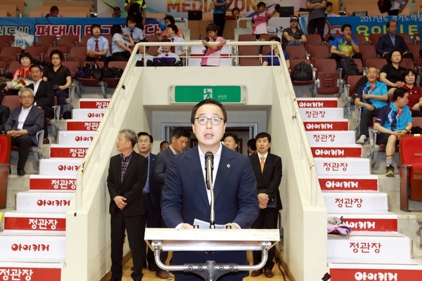 [경기헤드라인=문수철 기자] 경기도의회 정기열 의장(더불어민주당, 안양4)은 24일 10시, 안양종합운동장 실내체육관에서 열린 ‘2017년 경기도의회 의장배 탁구대회’에 참석했다.