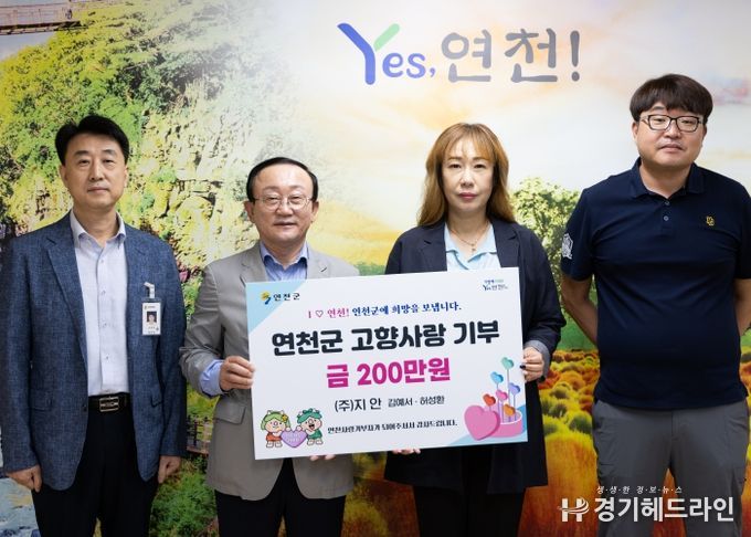 이날 기탁식에는 ㈜지안 김예서 대표와 허성환 이사가 참석해 각각 100만원씩, 총 200만원의 기부금을 전달했다. ㈜지안은 연천군 전곡읍 소재에 전기·통신 공사, LED전광판, 방송장비 등을 전문으로 하는 업체로 지역사회 발전에 기여하고 있다.