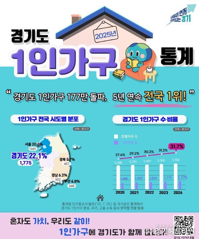 경기도는 이러한 내용을 담은 ‘2025 경기도 1인가구 통계’를 24일 발표했다.