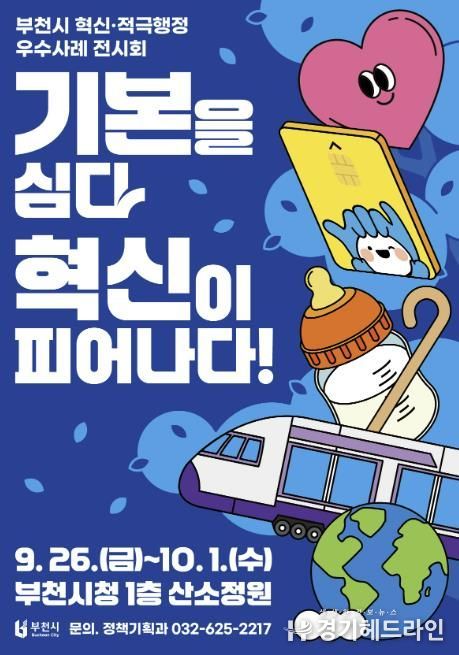 [경기헤드라인=문수철 기자] 부천시는 9월 26일부터 10월 1일까지 6일간 부천시청 1층 산소정원에서 ‘혁신‧적극행정 우수사례 전시회’를 연다. 이번 전시회는 ‘기본을 심다, 혁신이 피어나다!’를 주제로, 부천시가 시민의 행복과 소통을 중심으로 실천하는 혁신행정을 소개하기 위해 마련됐다.