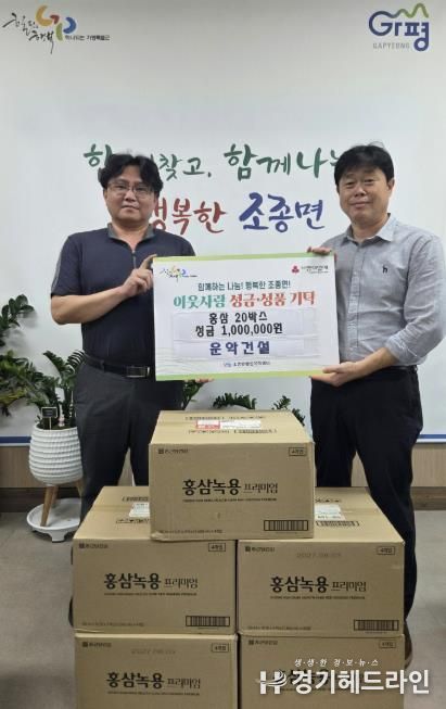 [경기헤드라인=문수철 기자] 가평군 소재 운악건설은 추석 한가위를 맞아 조종면 행정복지센터에 성금 100만원과 홍삼 20박스를 기탁하며 이웃사랑을 실천했다.