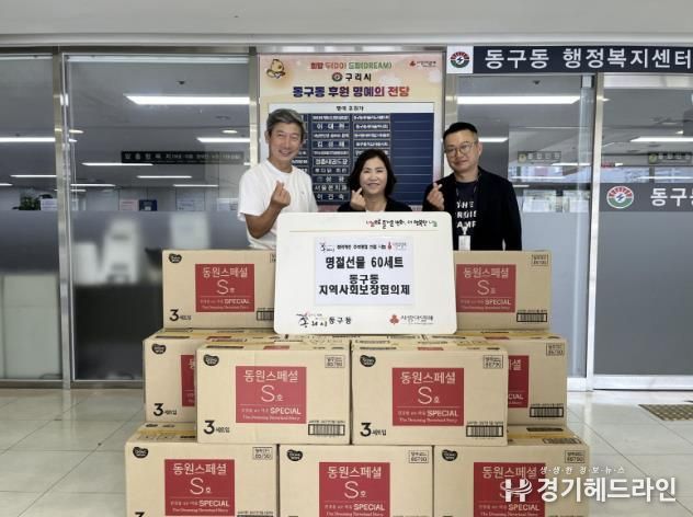 [경기헤드라인=문수철 기자] 구리시 동구동 지역사회 보장협의체는 지난 9월 25일에 동구동 행정복지센터에서 관내 취약계층을 위해 명절 선물 60세트를 전달하는 나눔 행사를 했다.