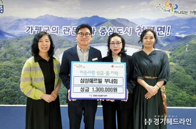 [경기헤드라인=문수철 기자] 가평군 청평10리 삼성쉐르빌 부녀회가 민족 대명절 추석을 앞두고 청평면에 지역의 어려운 이웃을 위해 성금 130만 원을 기탁했다.