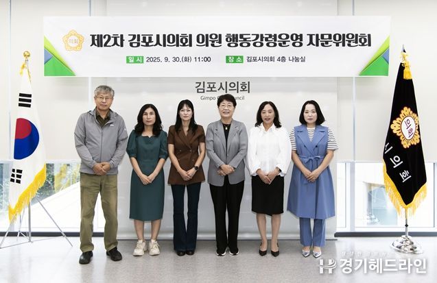 [경기헤드라인=문수철 기자] 김포시의회는 9월 30일 ‘2025년 제2차 의원 행동강령운영 자문위원회’를 열고, 2025년 상반기 행동강령 이행실태 점검 결과 등을 논의하며 민간 자문위원들과 다양한 의견을 나눴다.
