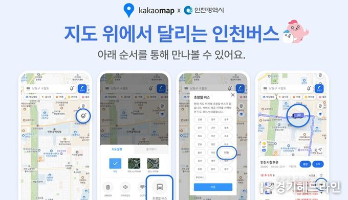 [경기헤드라인=문수철 기자] 인천광역시는 오는 9월 30일부터 카카오맵을 통해 실시간(초정밀) 버스 위치 서비스를 제공한다고 밝혔다.