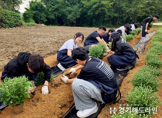[경기헤드라인=문수철 기자] 인천시설공단 송도공원사업단은 지난 30일 지역 주민과 학생들이 참여한 가운데 공단 자체 자원을 활용해 개화 능력을 회복시킨 ‘재생국화’를 달빛공원 꿀벌정원에 심는 행사를 진행했다.