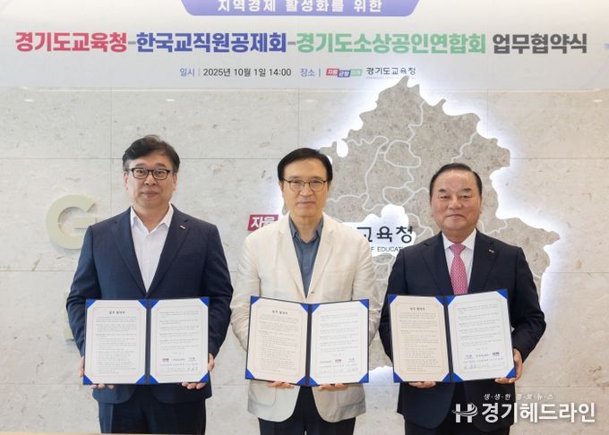[경기헤드라인=문수철 기자] 경기도교육청이 1일 남부청사에서 경기도소상공인연합회, 한국교직원공제회와 ‘지역경제 활성화를 위한 상생 업무협약’을 체결했다.